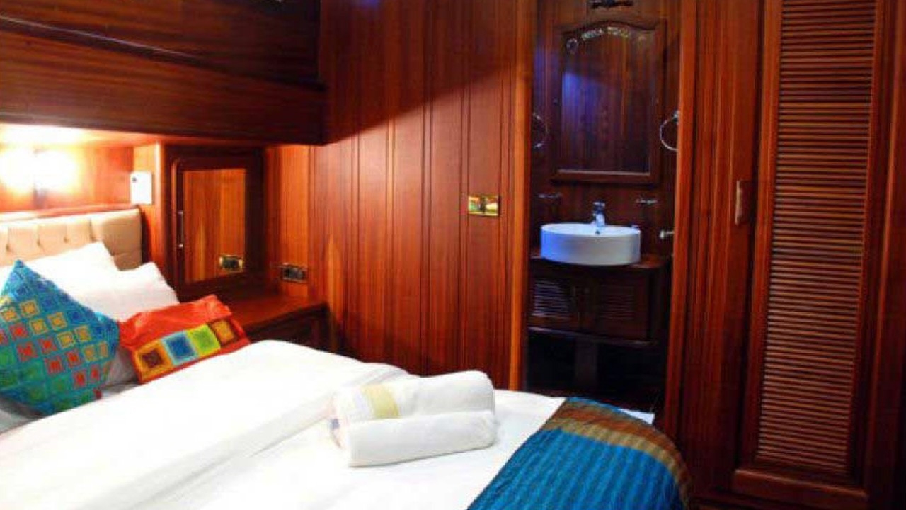 Gulet Sema Tuana, 32 metre uzunluğunda lüks bir gulet olup, Bodrum limanından hareketle Ege’nin en güzel koylarında unutulmaz bir mavi yolculuk deneyimi sunuyor. 12 kişilik kapasitesiyle geniş aileler ve arkadaş grupları için mükemmel bir seçenek olan Gulet Sema Tuana, 2 master, 2 double ve 2 twin kabin ile toplamda 6 kabin sunmaktadır. Her kabin, duşakabin ve banyo ile donatılmış olup, tatiliniz boyunca konforunuz en üst düzeyde tutulur.Gulet Sema Tuana’da 6 kişilik deneyimli mürettebat hizmet vermektedir. 1 kaptan, 1 aşçı ve 4 gemici ile tatiliniz boyunca her şey özenle planlanır. Ayrıca, sınırsız internet ve 24 saat klima gibi modern olanaklarla tatilinizi daha konforlu hale getirebilirsiniz.Su sporları tutkunları için Gulet Sema Tuana, jetski, kano, su kayağı, paddleboard, ringo ve snorkel gibi heyecan verici aktiviteler sunmaktadır. Ayrıca, tavla ve oyun kartları gibi klasik eğlencelerle tatilinizi renklendirebilirsiniz.Gulet Sema Tuana...